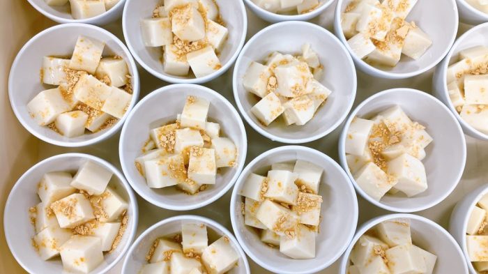 台湾風豆乳プリンは豆乳を固めた後に練乳ときな粉をのせています!