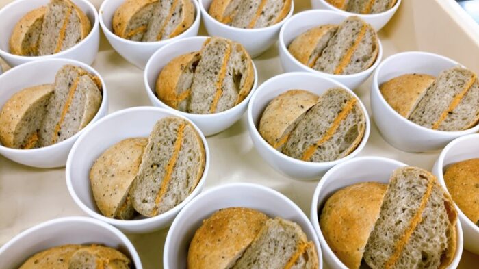 おやつの黒ごまきな粉サンドはきな粉とバター、砂糖を混ぜてペーストにしたものを